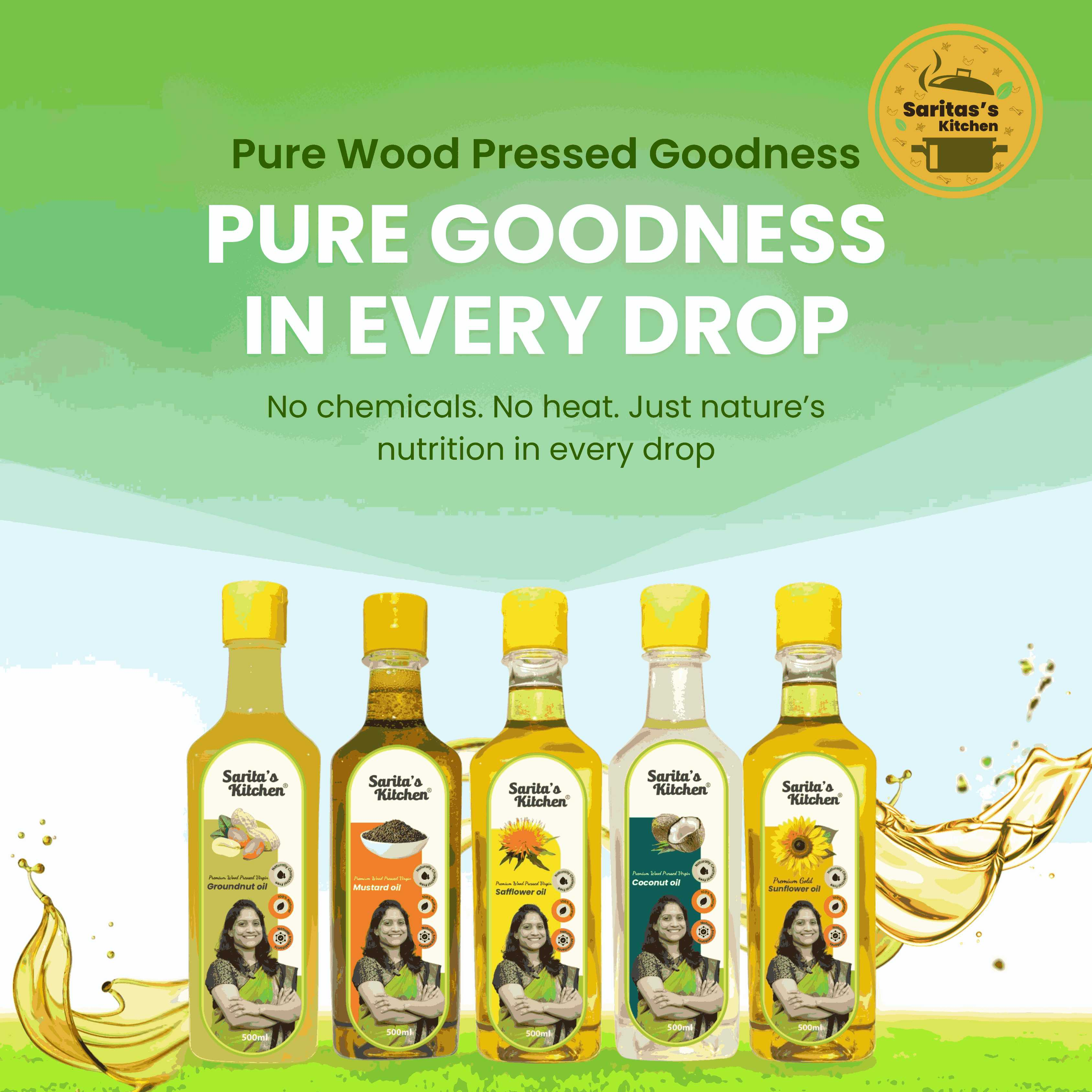 #SaritasKitchen #WoodPressedOil #HealthyLiving #NaturalGoodness #EatPureStayHealthy #HealthyCookingOil